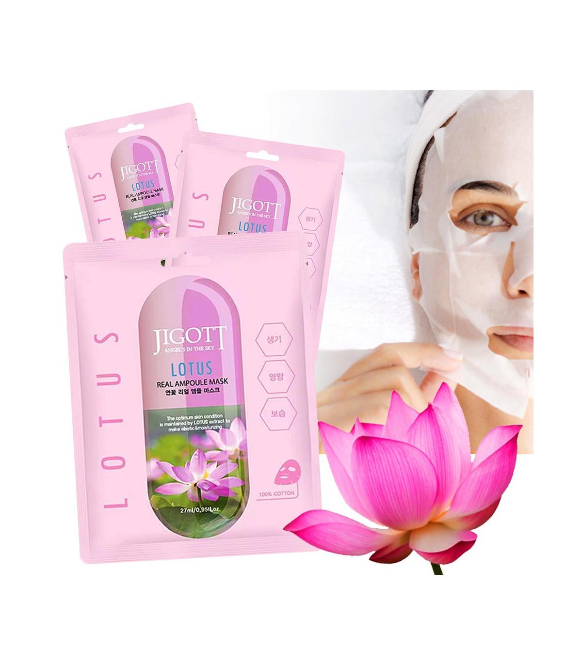 Mascarilla facial 100% algodón con extracto de flor de loto, que aporta luminosidad a la piel y contiene múltiples antioxidantes que ayudan a combatir el envejecimiento cutáneo, mejora de forma significativa la producción de colágeno reduciendo las arrugas. Ideal para piel madura, apta para todo tipo de pieles.